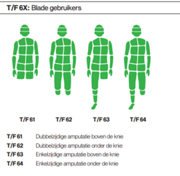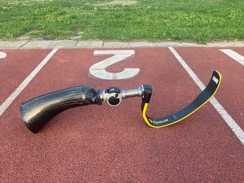 De bovenstaande blade wordt gebruikt door atleten met een bovenbeen amputatie. Dat betekent dat zij geen knie en geen voet meer hebben. De prothese bestaat uit een koker, het deel waar de stomp in gaat, de knie (een scharnier) en de blade. De prothese kan op verschillende manieren bevestigd worden aan de stomp.
