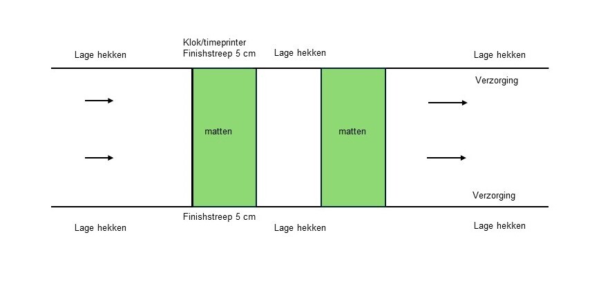 - plaats (lage) hekken tussen de startvakken